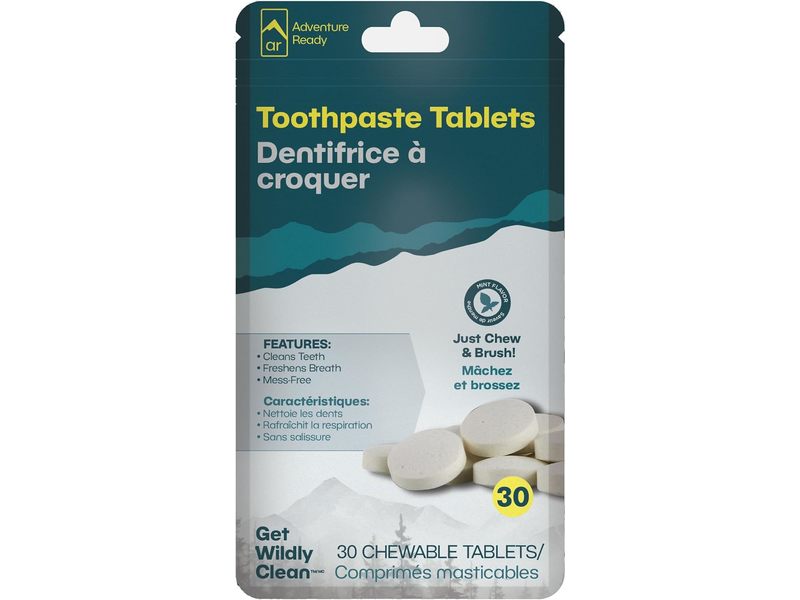 Banish bad breath to the wilderness with Adventure Ready toothpaste tablets. Formulated for all your deep-woods dental care needs, these concentrated, water-activated toothpaste tablets pack a breath of fresh air on all of your wildest adventures without having to carry a messy toothpaste tube.