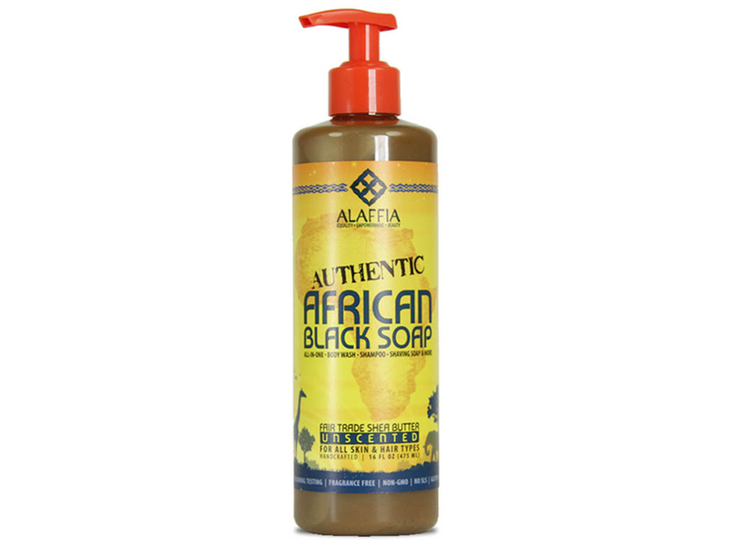 In West Africa, authentic black soap is known by its Yoruba name, Ossé Dudu. “Dudu” means the color black, which comes from extensive “cooking” of the soap to the point of charcoal. Many cultures in West Africa use charcoal to detoxify & purify the skin. This is an integral aspect of our true African black soap. Alaffia’s authentic black soap is made from a centuries old recipe of handcrafted shea butter and West African palm kernel oil. Saponification is provided by adding ashes to the hot oils, then cooking the soap for six hours. The last step is drying and curing the soap in the sun for three weeks, resulting in a gentle hand & body wash for all ages.