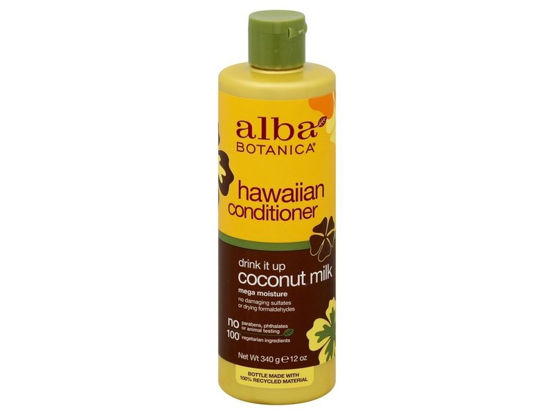 Alba Botanica Drink It Up Coconut Milk Conditioner, a refreshing treat for your thirsty tresses. High in fatty acids and protein, coconut milk locks in moisture to strengthen the cuticle and reduce split ends.