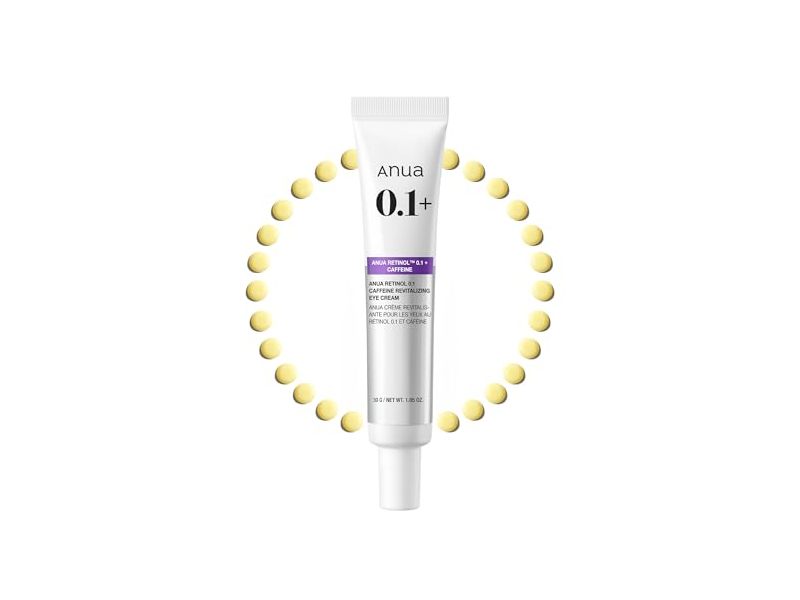 Anua Retinol 0.1 Caffeine Revitalizing Eye Cream helps skin appear more radiant and balanced by addressing smile lines and eye area shading. It helps smooth skin texture for a youthful, refreshed look around the eyes.