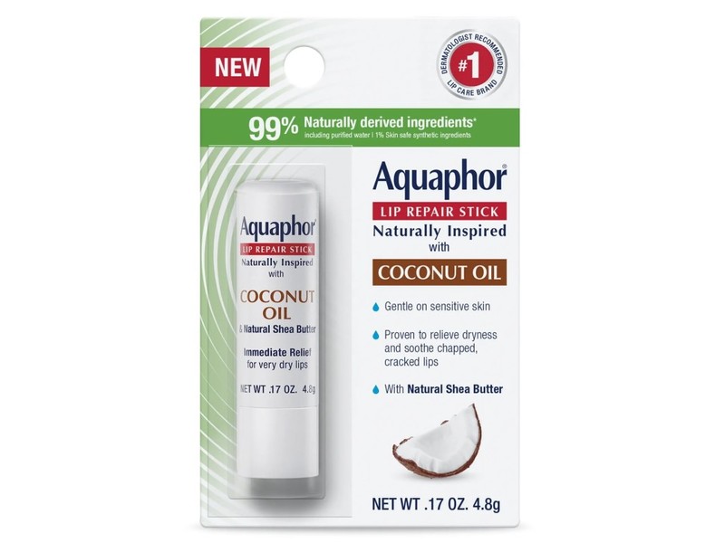 Find long-lasting moisture from the dermatologist recommended lip care brand with Aquaphor Naturally Inspired Lip Repair Stick with Coconut Oil. Aquaphor Naturally Inspired Lip Repair immediately relieves dryness and soothes chapped, cracked lips. This moisturizing lip balm is appropriate for sensitive lips and leaves lips feeling soft and hydrated, so lips look and feel healthier.