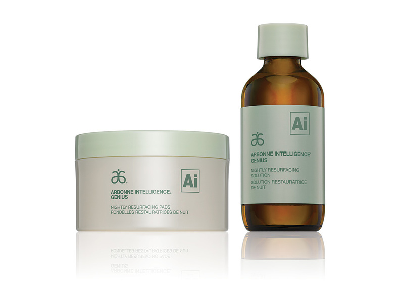 Arbonne Intelligence® Genius Nightly Resurfacing Pads and Resurfacing Solution Clinically proven to improve skin moisture, elasticity and firmness in just 2 weeks. Reduce the look of dark spots and fine lines for skin that feels smooth, even-toned and beautiful. Has shipping restrictions and may not be available in all areas, including Alaska, Hawaii, Puerto Rico, U.S. territories and parts of Canada.