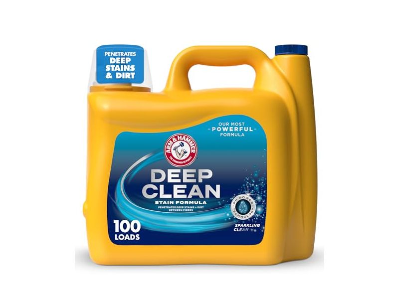 ARM & HAMMER Deep Clean Stain Formula Liquid Laundry Detergent, Sparkling Clean, 100 Loads, 150 fl oz/4.43 L