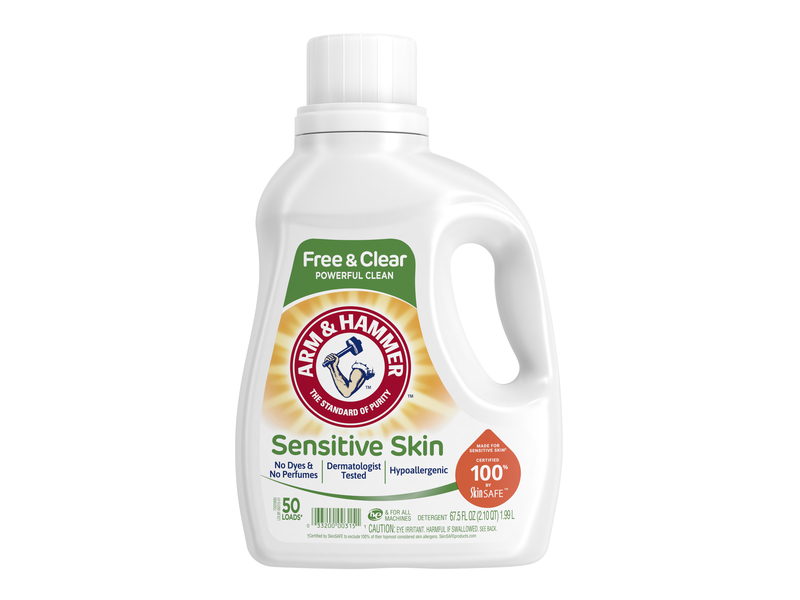ARM & HAMMER Sensitive Skin Free & Clear liquid laundry detergent is concentrated with 2X powerful stain fighters in every drop vs. leading bargain detergent. It's a hypoallergenic washing liquid detergent that has no dyes, perfumes, or preservatives so it's gentle on skin, but powerful on dirt. Its low-sudsing formula rinses clean and is designed to work in both standard machines and today’s energy conscious High Efficiency (HE) models, making it an effective and efficient sensitive skin laundry detergent.
