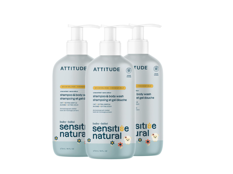 Attitude 2-In-1 Sensitive Natural Shampoo & Body Wash, Unscented, 16 fl oz/473 mL