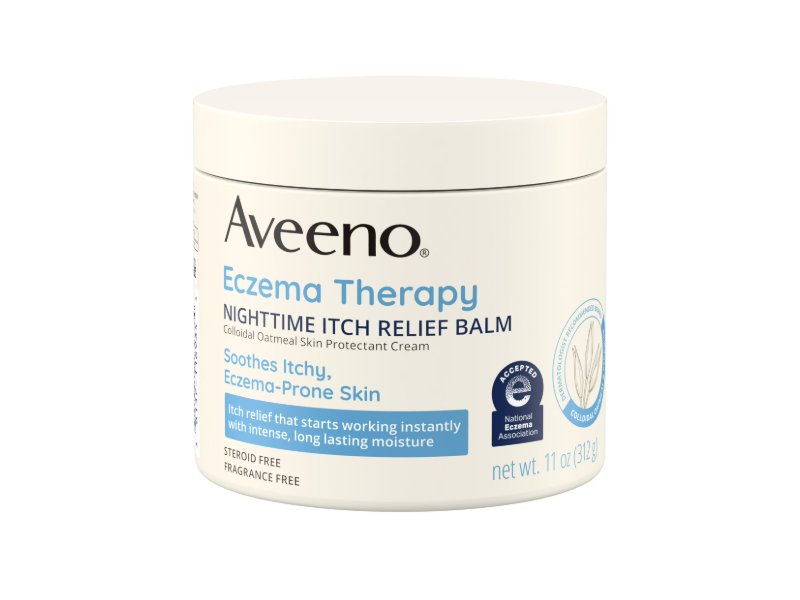 Aveeno Eczema Therapy Nighttime Itch Relief Body Balm specially formulated with colloidal oatmeal and ceramide to soothe itchy, eczema-prone skin instantly with intense, long lasting moisture