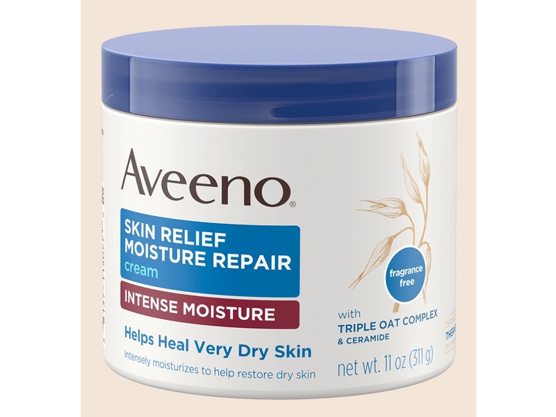 Help is on the way for extra dry skin. This therapeutic oat-based formula with ceramide and rich emollients helps restore the moisture barrier for extra-dry skin. AVEENO® Skin Relief Moisture Repair Cream is also clinically shown to deliver intense hydration that lasts for a full 24 hours.