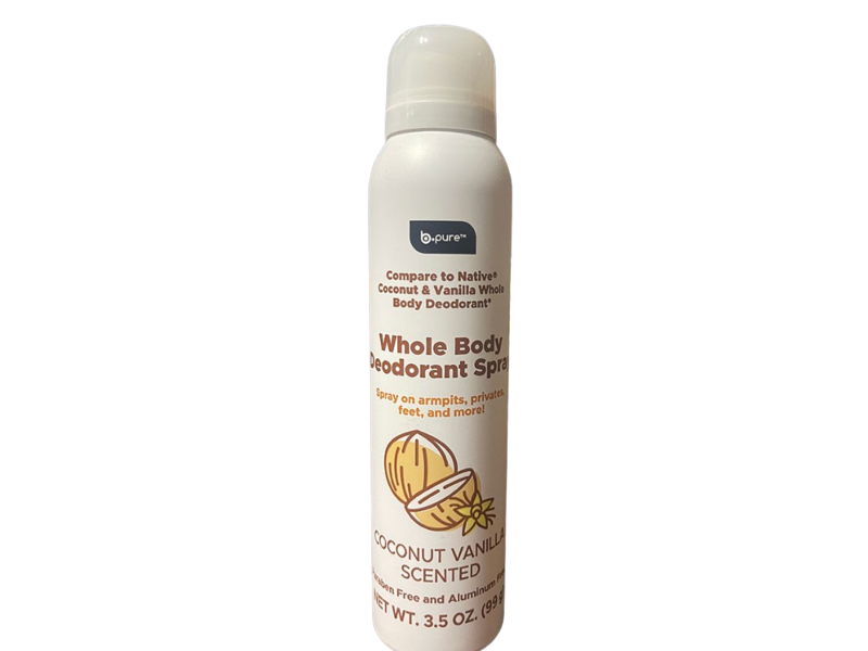 b.Pure Whole Body Deodorant Spray, Coconut Vanilla Scented, 3.5 oz/99 g
