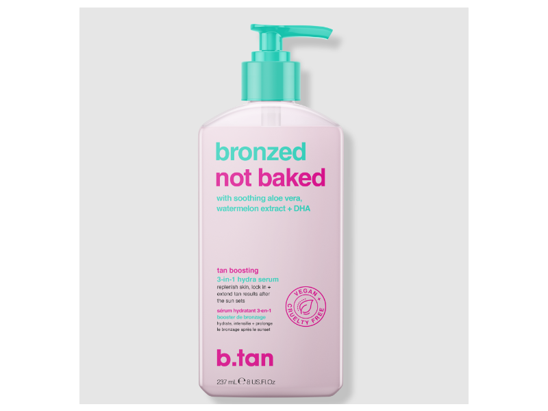 b. Tan Bronzed Not Baked Tan Boosting Gel is a 3-in-1 hydra gel to replenish skin, lock in + extend tan results when the sun has set.