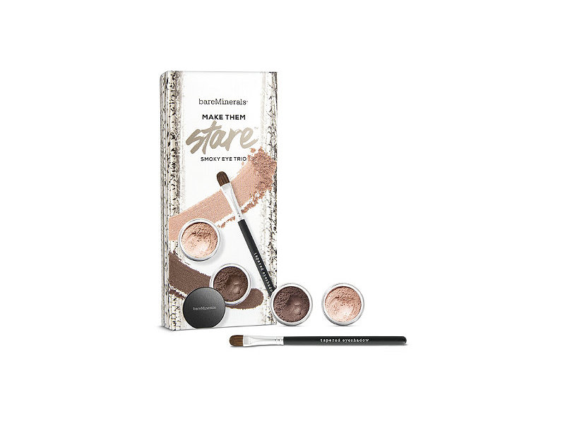 Command the room with this smoldering duo of soft and smoky eyecolors. Sweep on using the flat side of bareMinerals versatile tapered shadow brush, and then use the top of the bristles to blend, smudge and make them stare.