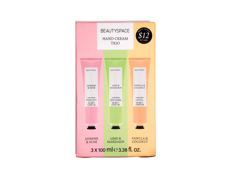 Beauty Space Hand Cream Set, Jasmine & Rose, Lime & Mandarin , Vanilla & Coconut, 3.38 fl oz/100 mL