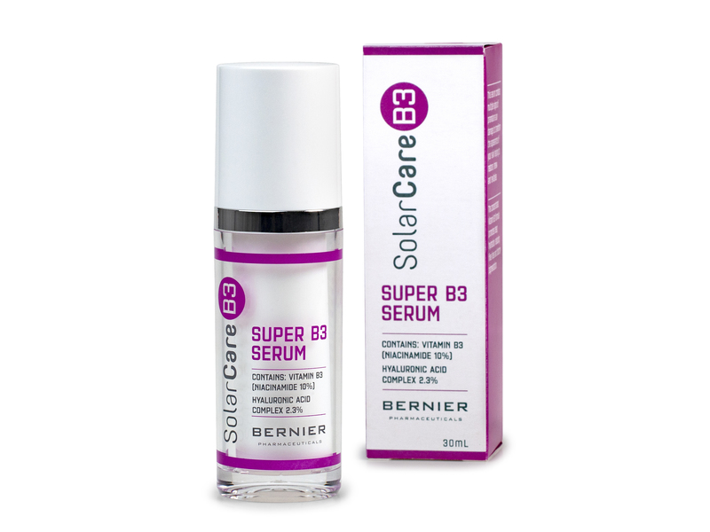SolarCareB3 Super B3 Serum is the most powerful tool for repairing sun-damaged skin with twice the regular concentration of vitamin B3 (10% niacinamide) PLUS the power of 2.3% Hyaluronic Acid Complex, which hydrates and plumps for healthier-looking skin.