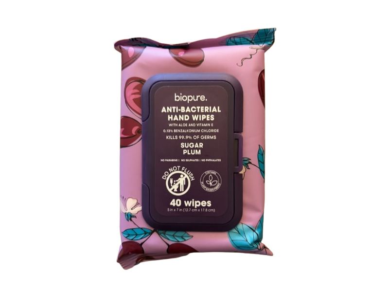 BioPure Anti-Bacterial Hand Wipes, Sugar Plum, 40 Count