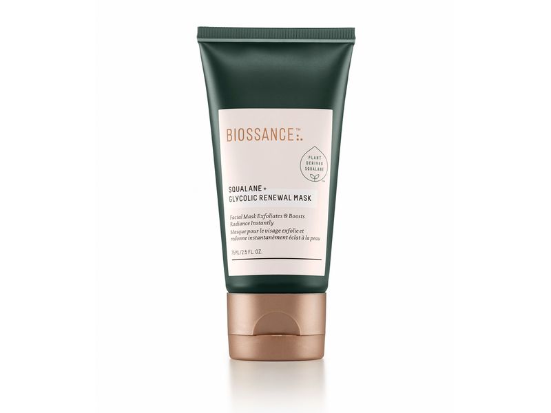 Biossance Squalane + Glycolic Renewal Mask. A skin triple-threat that combines a peel, exfoliator and mask into one. This glycolic AHA mask reduces the look of fine lines, discoloration and enlarged pores in just 10 minutes.