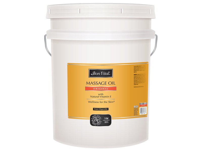 Bon Vital´Original Massage Oil - The blend of Grapeseed, Olive Oil, Jojoba, Avocado, Soybean, and Safflower oils make this the perfect mid-weight massage oil. Our thicker consistency allows for lasting glide, great for Stone massage, Lomilomi, or Swedish style modalities. This oil is enriched with Vitamins A, E, C, and Pro Vitamin B5. Water dispersible. Paraben Free! Unscented.