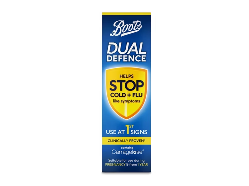 Dual Defence Nasal Spray is an easy to use nasal spray containing clinically proven Carragelose to help shorten the duration and severity of cold and flu-like symptoms.
