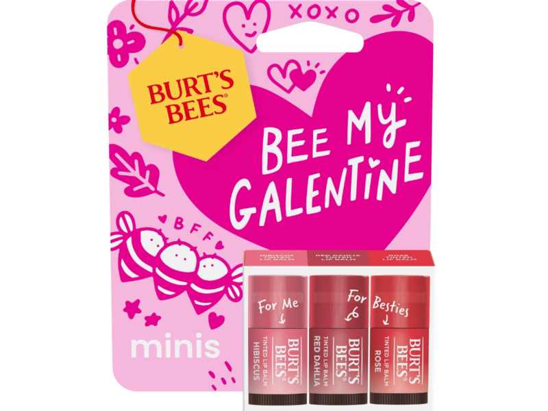 Burt's Bees Bee My Galentine Mini Tinted Lip Balm, Hibiscus, Red Dahlia & Rose, 0.049 oz/1.38 g