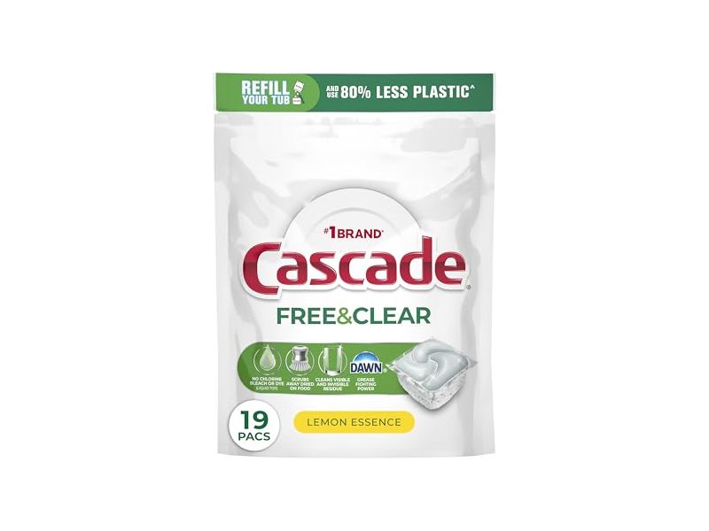 Free & Clear is Cascade's only dye-free liquid top, with no heavy perfumes. It's free of chlorine bleach and free of phosphates.
