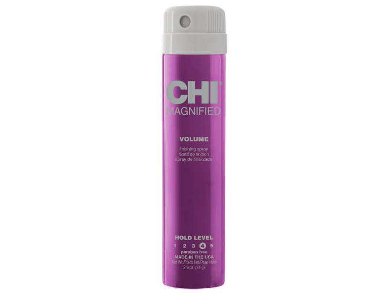 The CHI Magnified Volume Finishing Spray is a humidity resistant, flexible hold spray that builds resilience and strength.