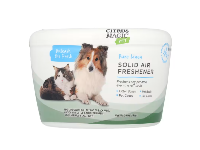 Long-lasting odor fighting air freshener removes odor while providing a clean scent