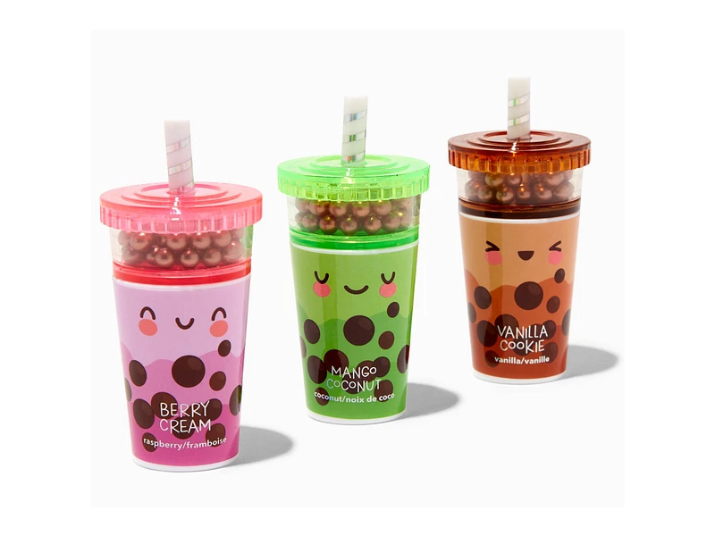 Claire's Boba Tea Shaker Lip Balm Set, Mango Coconut + Vanilla Cookie + Berry Cream, 0.14 oz/4 g