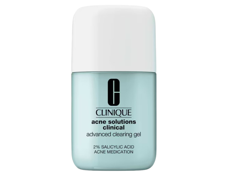 Clinique Acne Solutions Clinical Advanced Clearing Gel is a powerful topical treatment with 2% salicylic acid. Helps clear breakouts + prevent new ones.