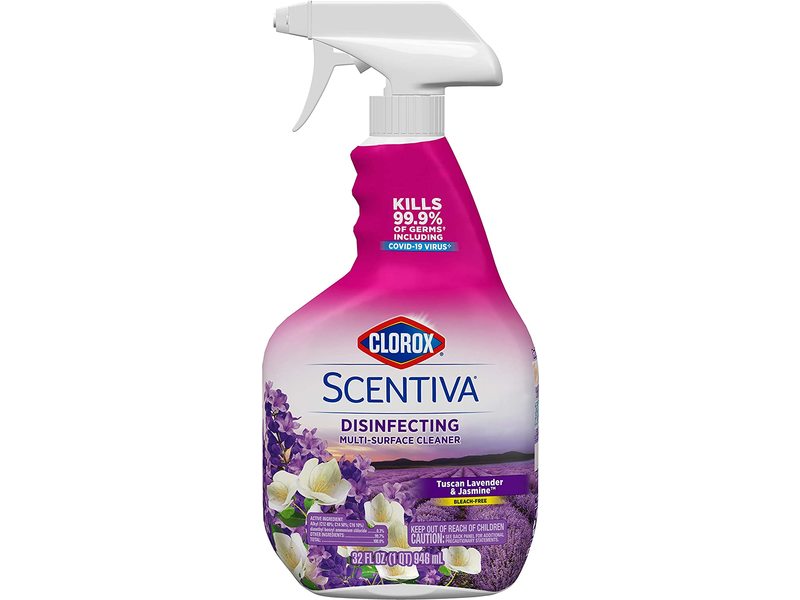 Tuscan Lavender and Jasmine Clorox Scentiva Multi Surface Cleaner cleans and kills 99.9% of viruses and bacteria throughout your home, leaving behind a fabulous scent. This amazingly scented, all-purpose cleaner is bleach-free and has no chemical scent at all.