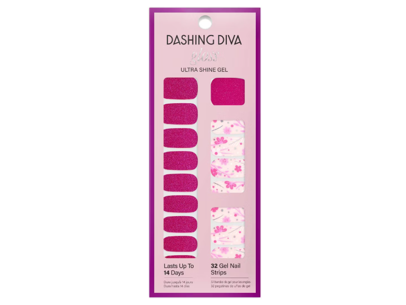 Not your basic fleur. Nude pink and hot pink shimmer gel nail strips featuring metallic silver details and floral accents with a glossy, high-shine finish.