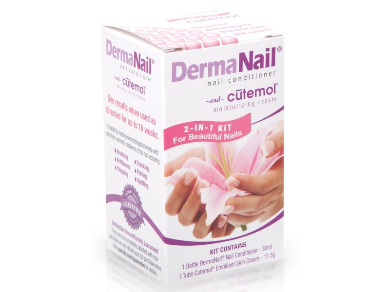 Created by leading dermatologists to help with common cosmetic nail problems including chipping, cracking, peeling, splitting, breaking, brittle, thin, or weak nails associated with a variety of conditions. DermaNail’s patented nail conditioner formula improves the cosmetic appearance of their nails. & Moisturize your cuticles with Cutemol Emollient Cream.