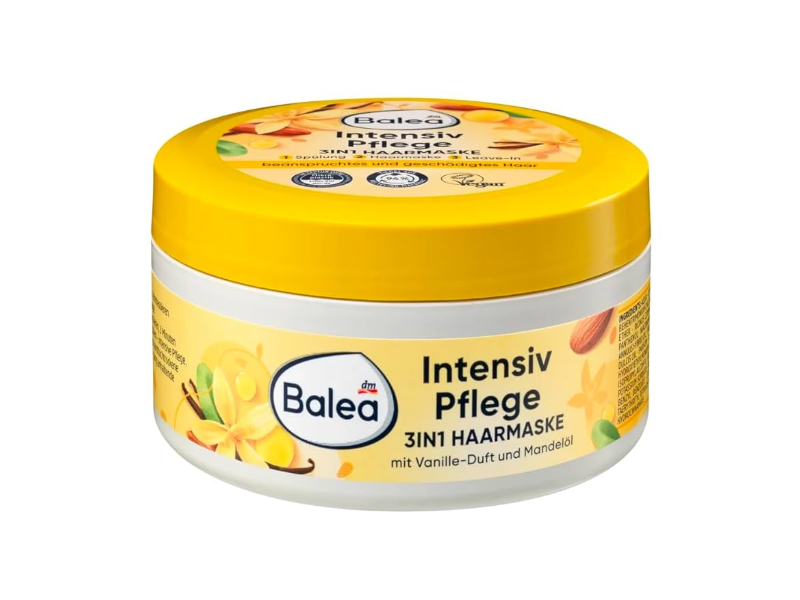 The Balea 3-in-1 Intensive Care Hair Mask pampers stressed hair and regenerates it right down to the tips thanks to its anti-breakage formula.
