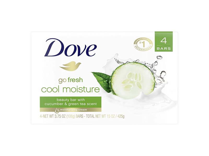 Dove Go Fresh Cool Moisture Beauty Bar, Cucumber & Green Tea Scent, 3.75 oz/106 g, 4 Count