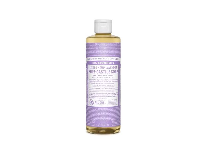 Scented with pure lavender and lavandin oils to calm the mind and soothe the body! Dr. Bronner’s Pure-Castile Lavender Liquid Soap is concentrated, biodegradable, versatile and effective. Made with organic and certified fair trade ingredients, packaged in a 100% post-consumer recycled bottle. All-One!
