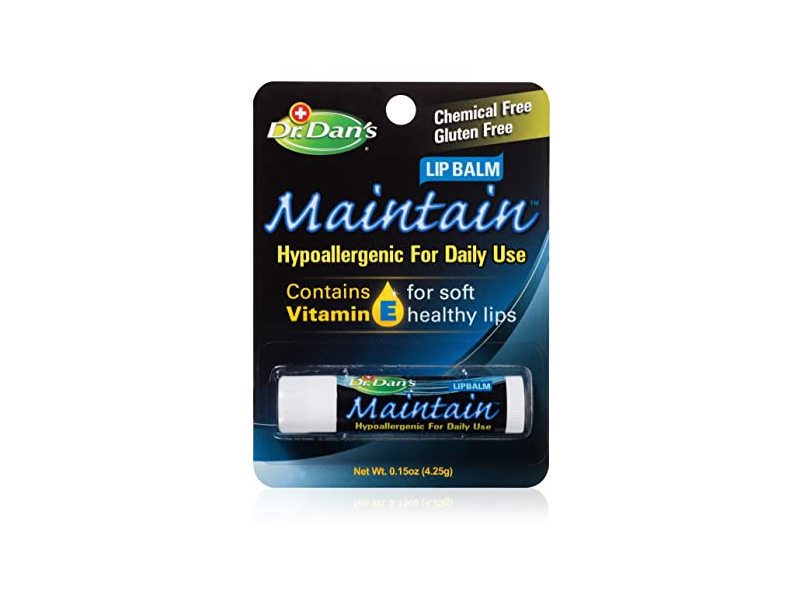 Hypoallergenic for sensitive skin: Dr. Dan's Maintain lip balm contains only the best in pure ingredients. The ingredient list is short: petrolatum, mineral oil, beeswax and vitamin E. Dr. Dan's Maintain goes beyond a regular vitamin E stick or beeswax lip balm by soothing and healing your skin, giving you healthy, soft lips. Because there are no harsh chemicals or oils, Keep also works great as a lip balm for kids.