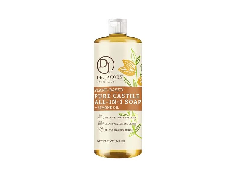Dr. Jacobs Naturals Plant Based Pure Castile All-In-1 Soap, Almond Oil, 32 oz/946 mL