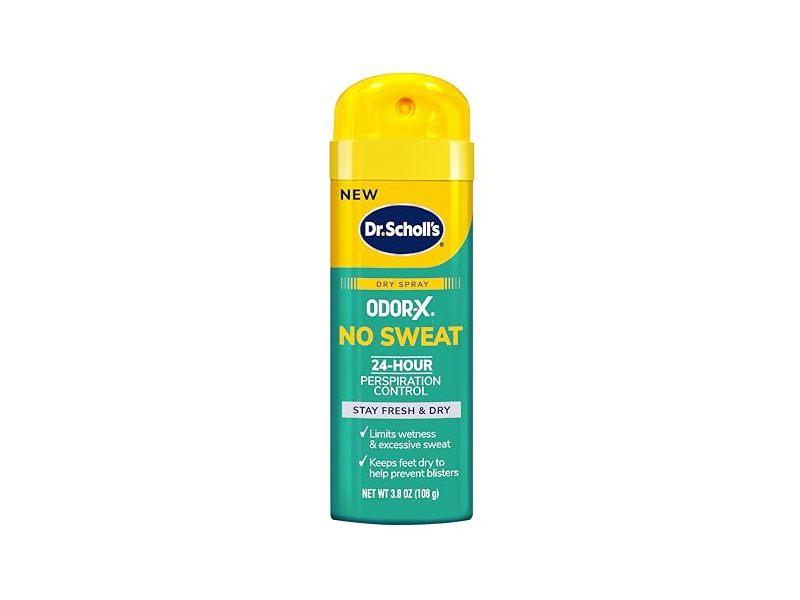 Dr. Scholl's Odor-X No Sweat Dry Spray provides 24-hour perspiration control for feet, ensuring all-day dryness and comfort. Clinically tested and formulated to effectively reduce wetness and excessive foot sweat.