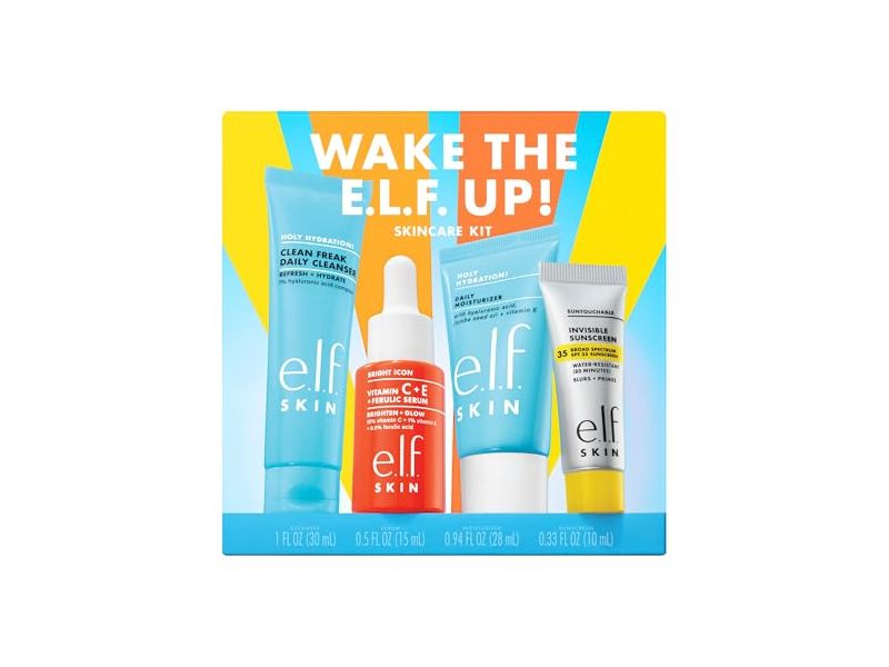 Take your a.m. skincare routine with you on the go with the e.l.f. Cosmetics SKIN Wake the e.l.f. Up Skincare Kit. This travel-size skincare kit features an easy morning lineup of 4 minis to cleanse, moisturize, visibly brighten and protect your skin at a price that's e.l.f.ing epic.