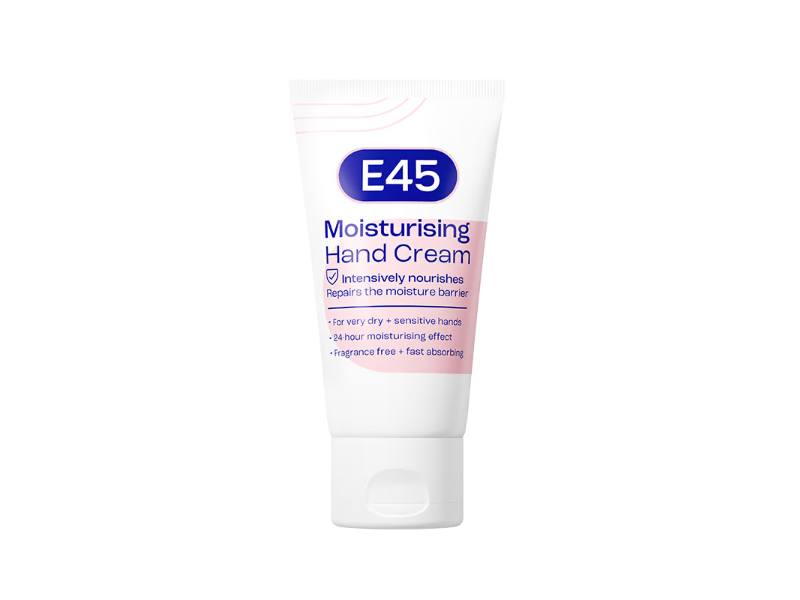 E45 Moisturising Hand Cream nourishes, hydrates and soothes the skin, whilst also repairing the skin’s moisture barrier and smoothing away roughness for soft and supple hands