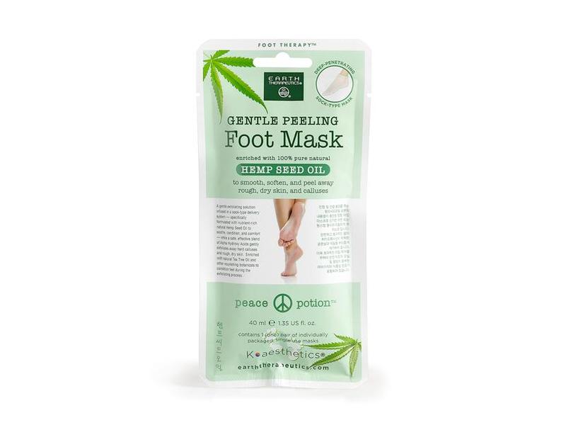 Enriched with 100% pure natural Hemp Seed Oil to soothe, condition, and comfort — while a safe, effective blend of Alpha Hydroxy Acids gently exfoliates away hard calluses and rough, dry skin. This single-use, specially designed "sock-type" Hemp Oil Gentle Peeling Foot Mask smooths out dry, dead skin and gently peels away hard calluses over time. Infused with natural Tea Tree Oil and other nourishing botanicals to condition and protect, this treatment will lead to visible results within 2 weeks.