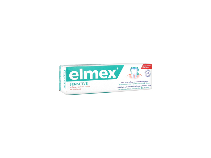 Immediate relief and long-lasting pain elmex SENSITIVE PROFESSIONAL toothpaste contains the new Pro-Argin technology which is also used in dental offices. The combination of active substances arginine and calcium carbonate directly and profoundly blocks the channels that transmit stimuli (dentinal tubules), providing immediate relief of pain. Immediate action in case of direct application and massage with the finger (about 1 min) on the sensitive tooth When used regularly, building a lasting protective barrier that acts as a bulwark against tooth sensitivity The protective barrier is resistant to acids Medical product - clinically proven mode of action Suitable for daily use For immediate relief of pain, apply directly to the sensitive tooth with the fingertip (about 1 minute)