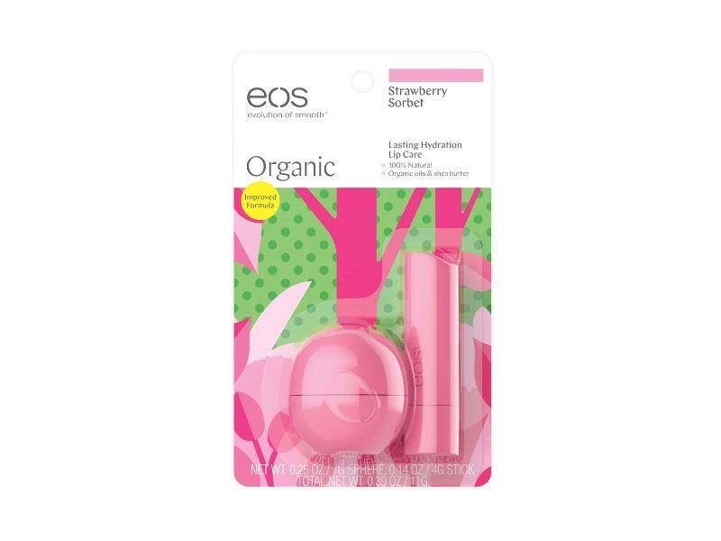 eos Strawberry Sorbet flavored lip balm is USDA Certified organic, 100% natural, and paraben and petrolatum free. Packed with antioxidant-rich vitamin E, soothing shea butter and jojoba oil, eosOrganic hydrates your lips and enhances your natural beauty.