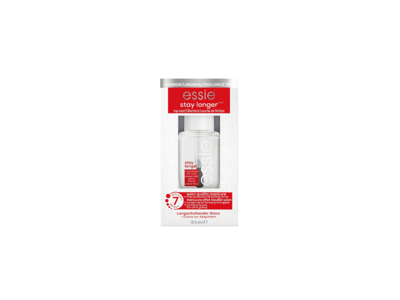 Essie Stay Longer premium longwear top coat with chip protection locks in color and provides lasting shine.