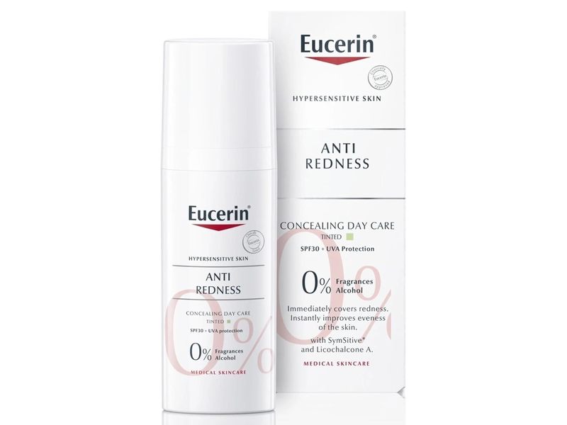 Eucerin AntiRedness Concealing Day Cream SPF25 (Tinted) 50ml has been especially developed for hypersensitive and redness-prone skin. Applied after cleansing, it instantly hydrates, calms irritation and helps cover visible redness. This innovative formula combines two active ingredients - SymSitive* and Licochalcone A.