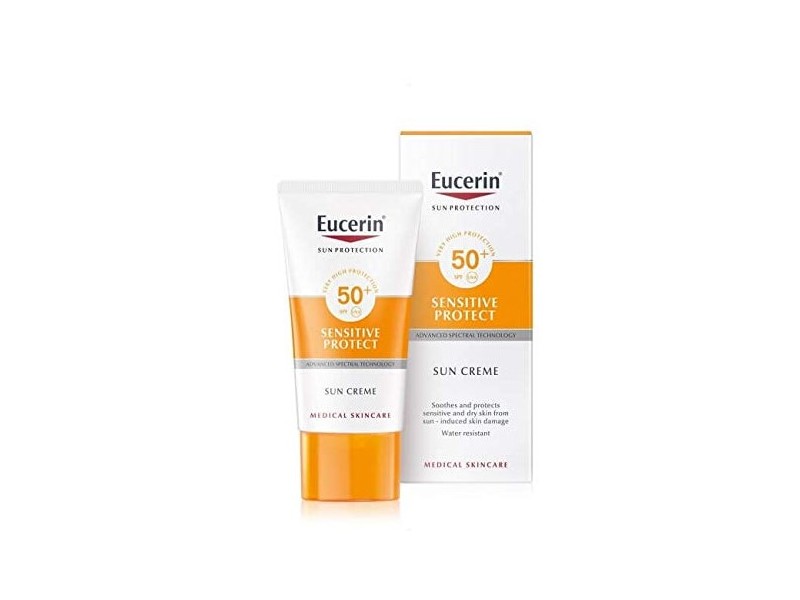 UV light is the main cause of sun-induced skin damage, but high-energy visible (HEVIS) light can also induce free radicals that cause further stress to skin.Eucerin Sun Creme Sensitive Protect SPF 50+ is an everyday facial sunscreen that protects and soothes sensitive and dry skin.