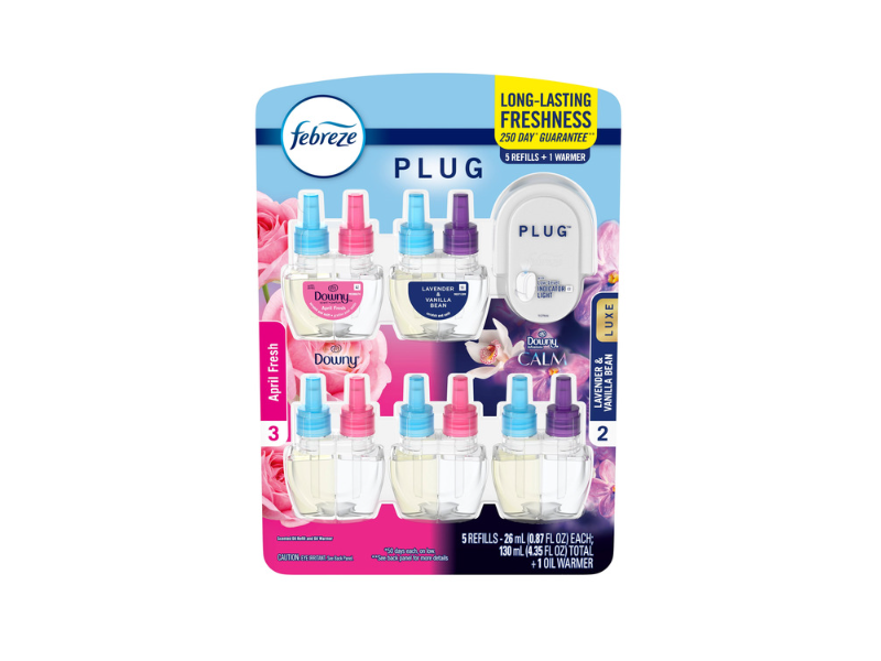 Febreze x Downy Plug Scented Oil Refill & Oil Warmer, April Fresh + Lavender & Vanilla Bean, 0.87 fl oz/26 mL, 5 Count