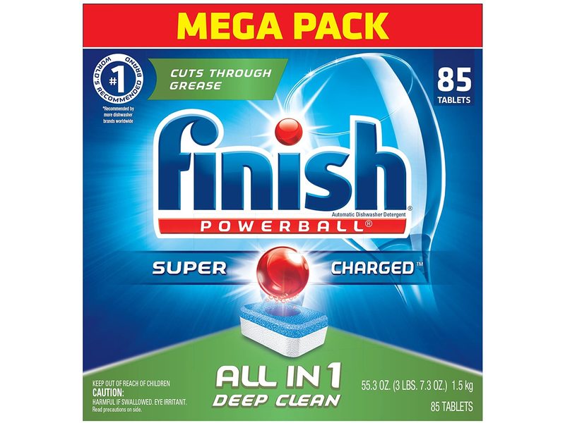 Finish All In 1 dishwasher detergent tablets give you an amazing clean and shine, which means you will never have to re-wash your dishes again. Powerball supercharges the tablet, bursting into action to scrub away the toughest food residues like dried-on food, such as lasagna and oatmeal.