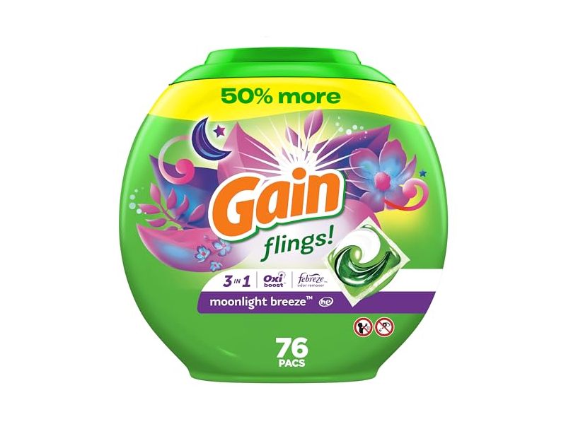 Gain Flings 3 In 1 Laundry Detergent Pacs, Moonlight Breeze Scent, 51 oz/1.47 kg, 76 Count