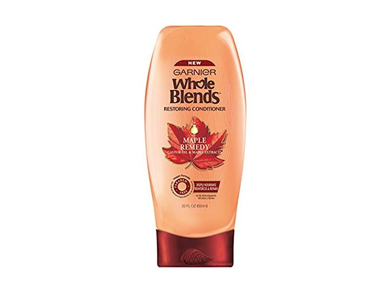 Garnier Whole Blends Maple Remedy Restoring Conditioner deeply nourishes, reinforces, and repairs dry, damaged hair