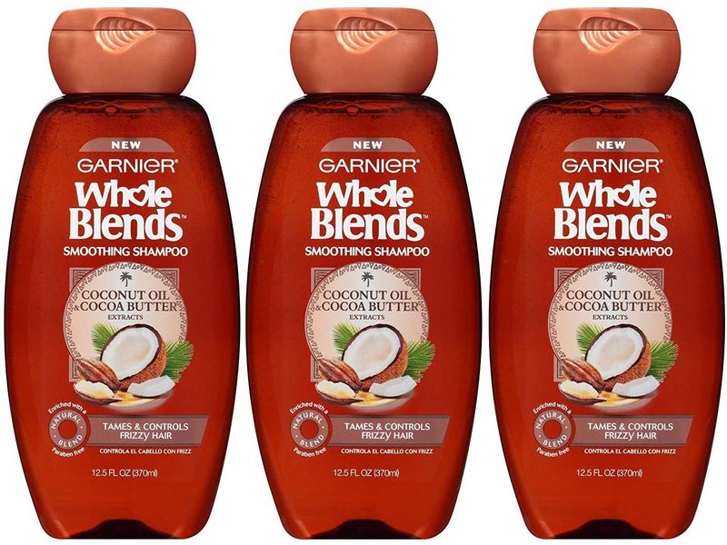 Garnier Whole Blends Smoothing Shampoo, Coconut Oil & Cocoa Butter Extracts, 12.5 fl oz/370 mL, Pack Of 3