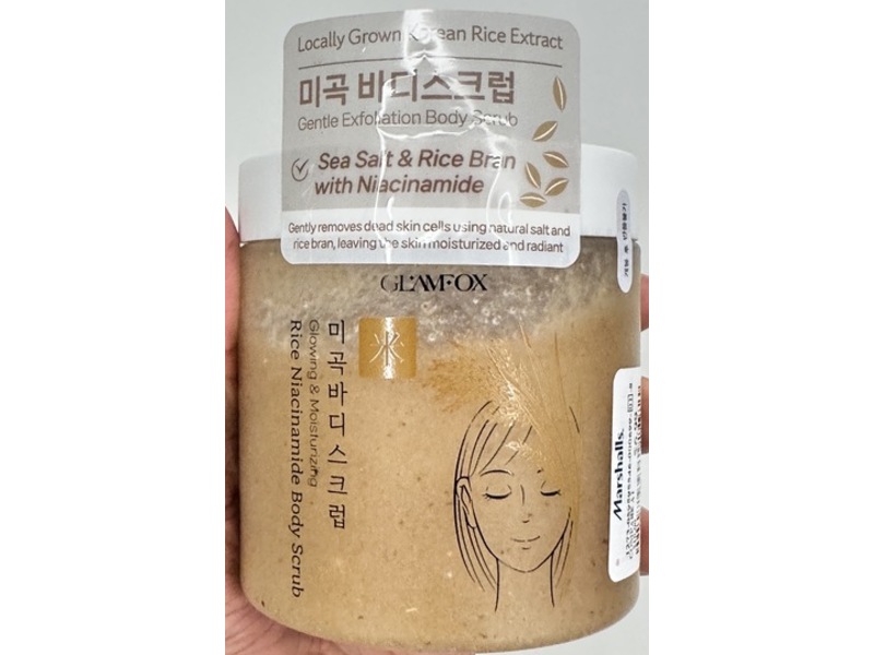 GlamFox Glowing & Moisturizing Body Scrub, Sea Salt, Rice Bran & Niacinamide, 17.63 fl oz/500 g