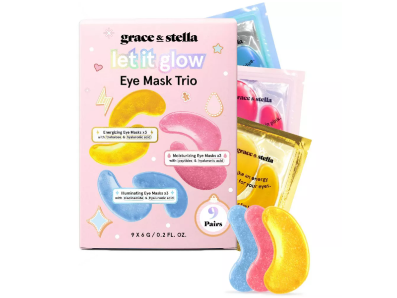 Grace & Stella Let It Glow Eye Mask Trio, Energizing, Moisturizing & Illuminating, 0.2 fl oz/6 g, 9 Pairs